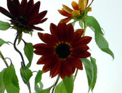 ひまわり・クラレット元気なイメージの花『ひまわり』。老若男女問わず誰でも知っている花でもあると思います。黄色やオレンジ色のひまわりはよく見かけると思いますが、褐色のチョコレートのような色のひまわりもあるのです。紹介するひまわりは『クラレット』といいます。