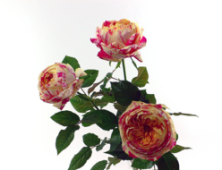 バラ・パーティーラナンキュララナンキュラスのように咲いてくるバラがあります。そのバラの名前は、『ラナンキュラ』。赤色ベースに白の絞りがはいっているラナンキュラが市場に出てきてから数年たちますが、いまはレッド、レモン、ピンクなど改良されて数種類ありカラフルになっております。